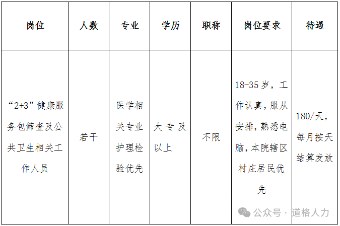 因工作需要,我司受吉陽區(qū)海羅衛(wèi)生院委托招聘若干名臨時(shí)工作人員,參與“2+3”健康服務(wù)包篩查及公共衛(wèi)生相關(guān)工作,現(xiàn)崗位具體要求如下: