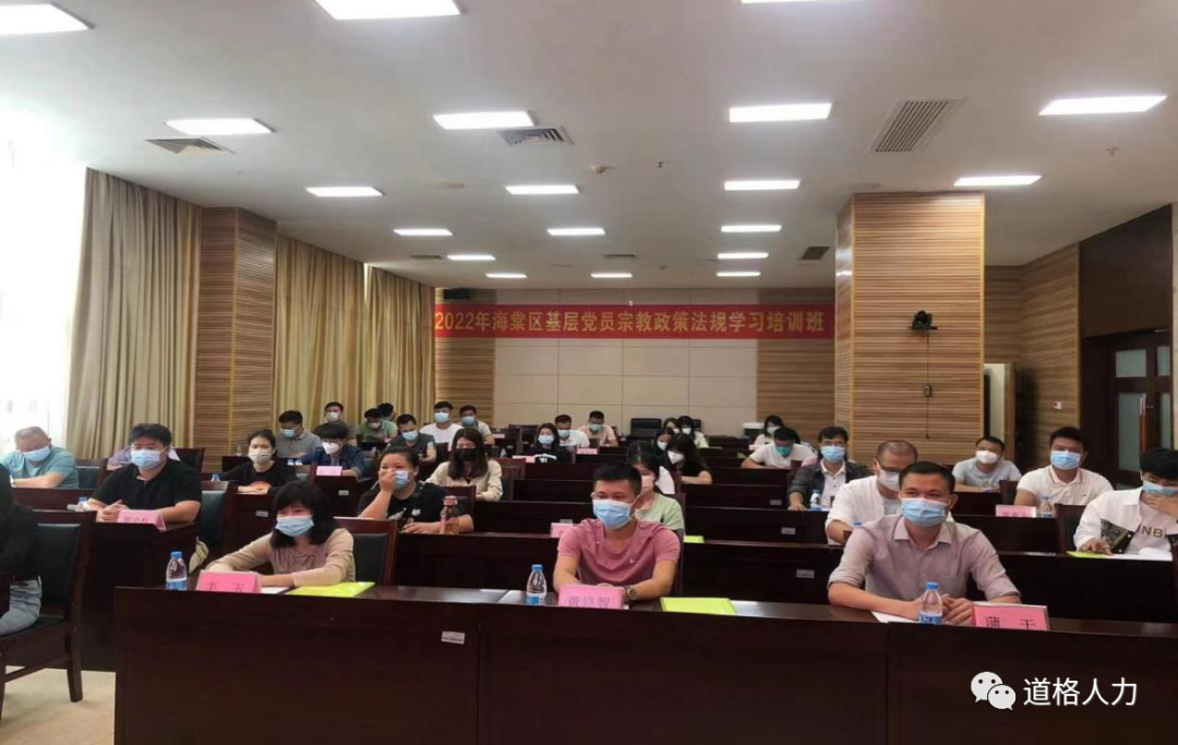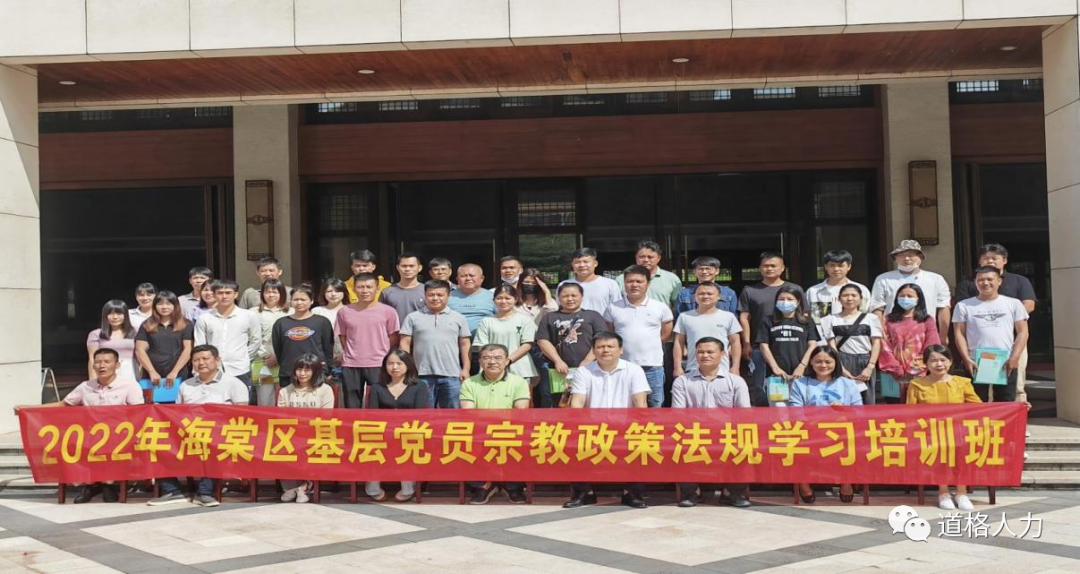 由中共三亞市海棠區(qū)委統(tǒng)一戰(zhàn)線工作部、中共三亞市海棠區(qū)委組織部聯(lián)合舉辦,海南道格人力資源開發(fā)服務(wù)有限公司承辦的2022年海棠區(qū)基層黨員宗教政策法規(guī)學(xué)習(xí)培訓(xùn)班,于2022年10月25日開班,此次培訓(xùn)班為期四天,參加培訓(xùn)人數(shù)為44人。