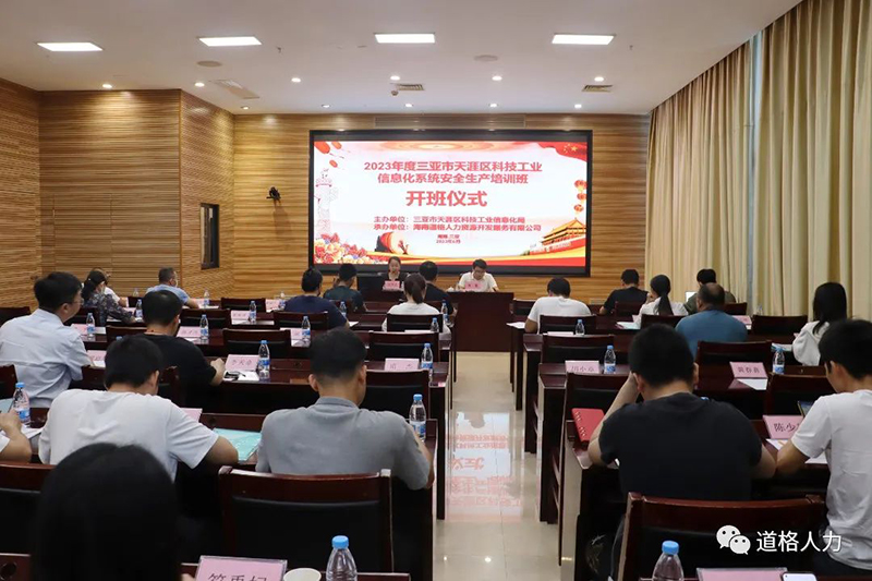 2023年6月21日,三亞市天涯區(qū)科技工業(yè)信息化局主辦,海南道格人力資源開(kāi)發(fā)服務(wù)有限公司承辦的2023年度三亞市天涯區(qū)科技工業(yè)信息化系統(tǒng)安全生產(chǎn)培訓(xùn)班正式開(kāi)班。