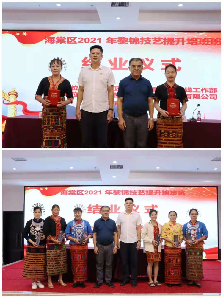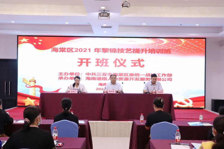 由中共三亞市海棠區(qū)委統(tǒng)一戰(zhàn)線工作部主辦,海南道格人力資源開發(fā)服務(wù)有限公司承辦的海棠區(qū)2021年黎錦技藝提升培訓(xùn)班,于2021年11月22日-26日在保亭戴斯溫泉酒店舉辦,中共三亞市海棠區(qū)委常委、統(tǒng)戰(zhàn)部部長黃澤緯同志做開班動員講話,參加培訓(xùn)的是海棠區(qū)各村(居)黎錦技藝愛好者,共計46人。